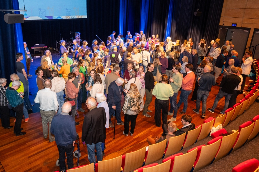 Foto2: Het publiek in een informele sfeer bij elkaar